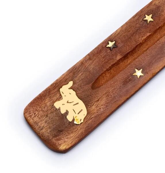 Suport simplu pentru bețișoare de tămâie Flexity, realizat din lemn de mango, decorat cu un simbol metalic al elefantului. Potrivit pentru arderea bețișoarelor subțiri de tămâie. Fabricat în India.